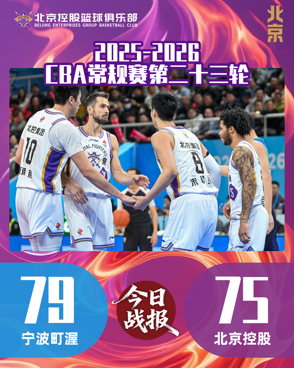 2月3日,北控男篮迎来常规赛第一阶段的收官战,客场对阵宁波男篮。球队在上半时一度领先对手15分的有利局面下末节哑火痛失好局,最终75:79不敌对手,终结四连胜。