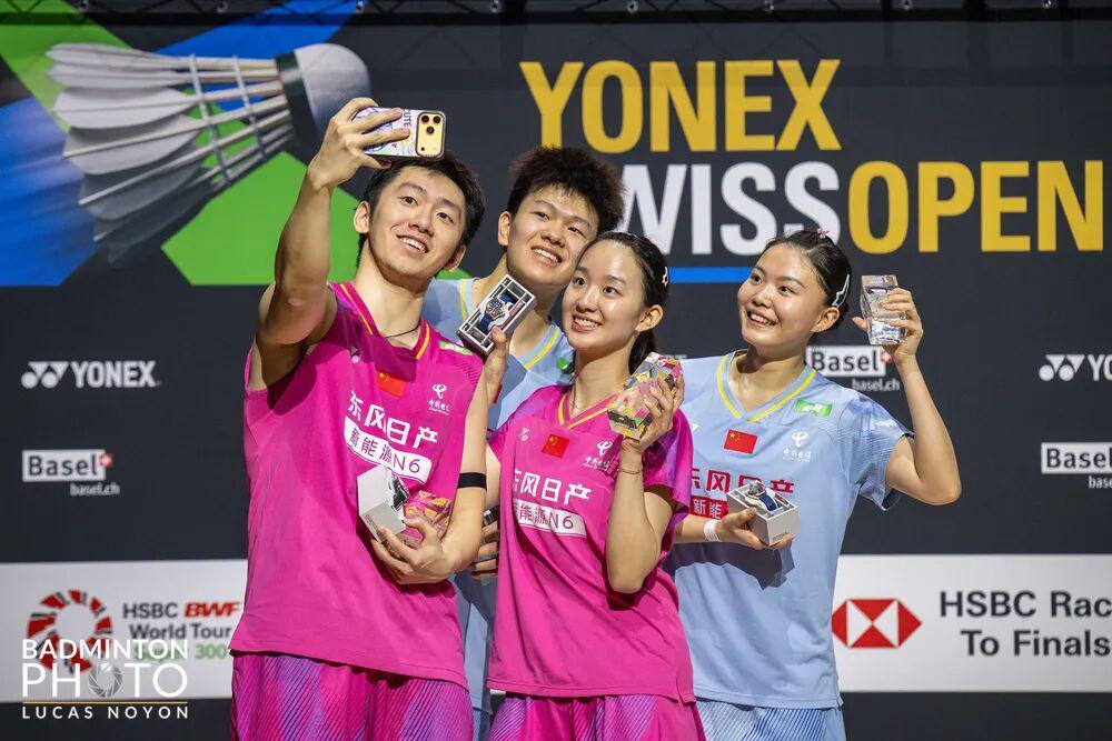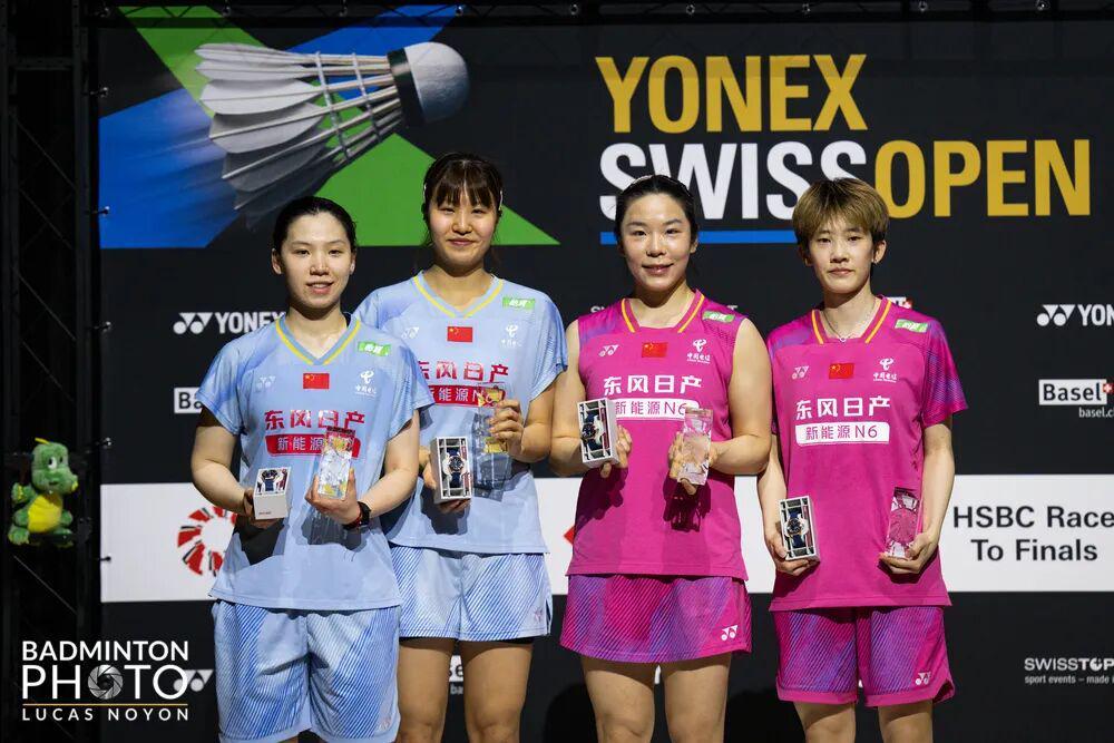 瑞士超级300赛与中国瑞昌超级100赛昨天同日结束争夺,中国羽毛球队在瑞士公开赛斩获女双和混双两个项目的冠军,且都是在决赛中实现会师;在瑞昌大师赛则包揽全部五项冠军。